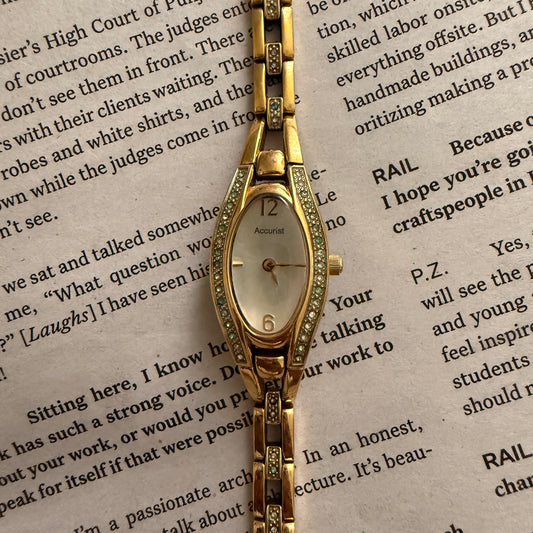 Sold outGold slim jade embellished watch