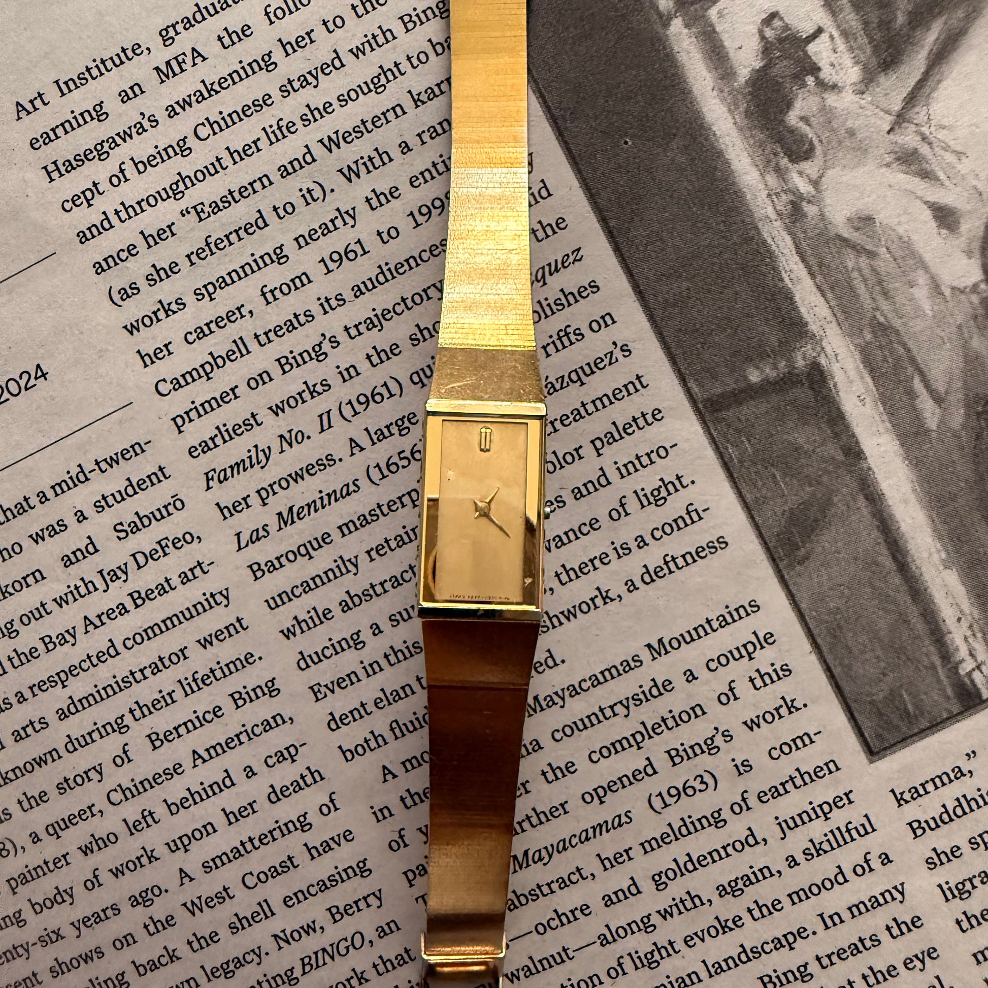 Gold rectangle face smooth minimal watch