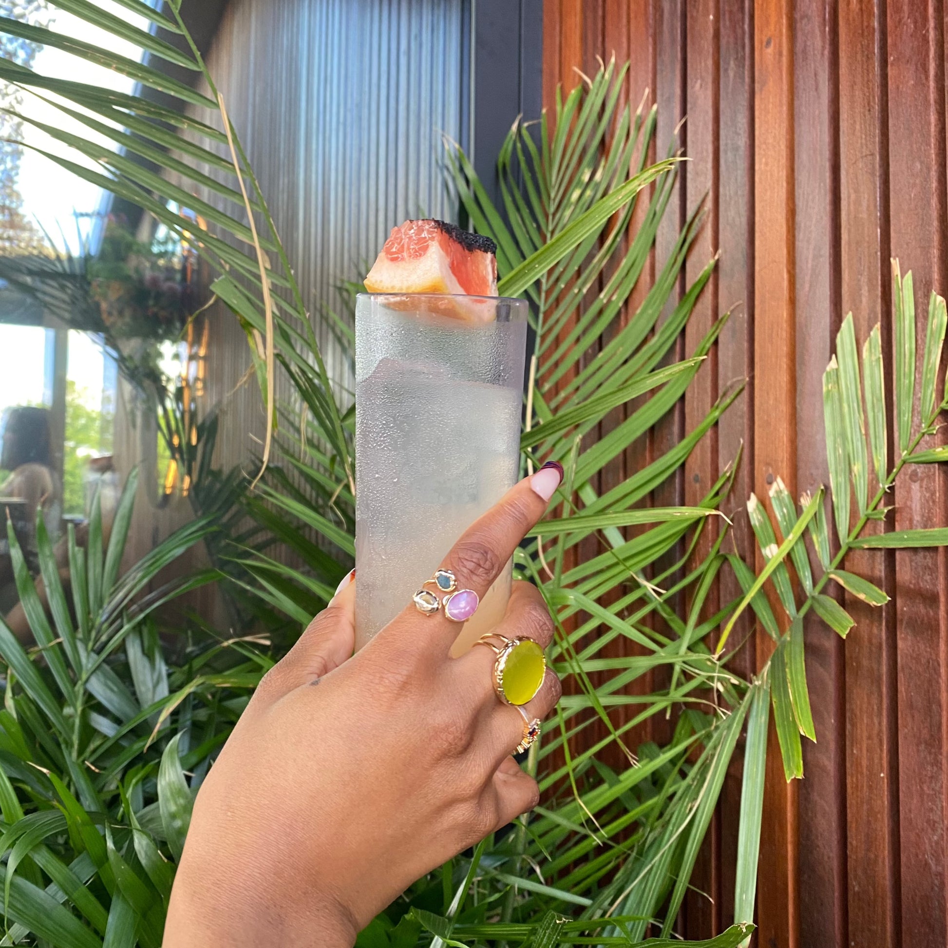 Lemon drop is an adjustable 18k gold plating on sterling silver ring. It features a yellow gem on a double thin gold band.