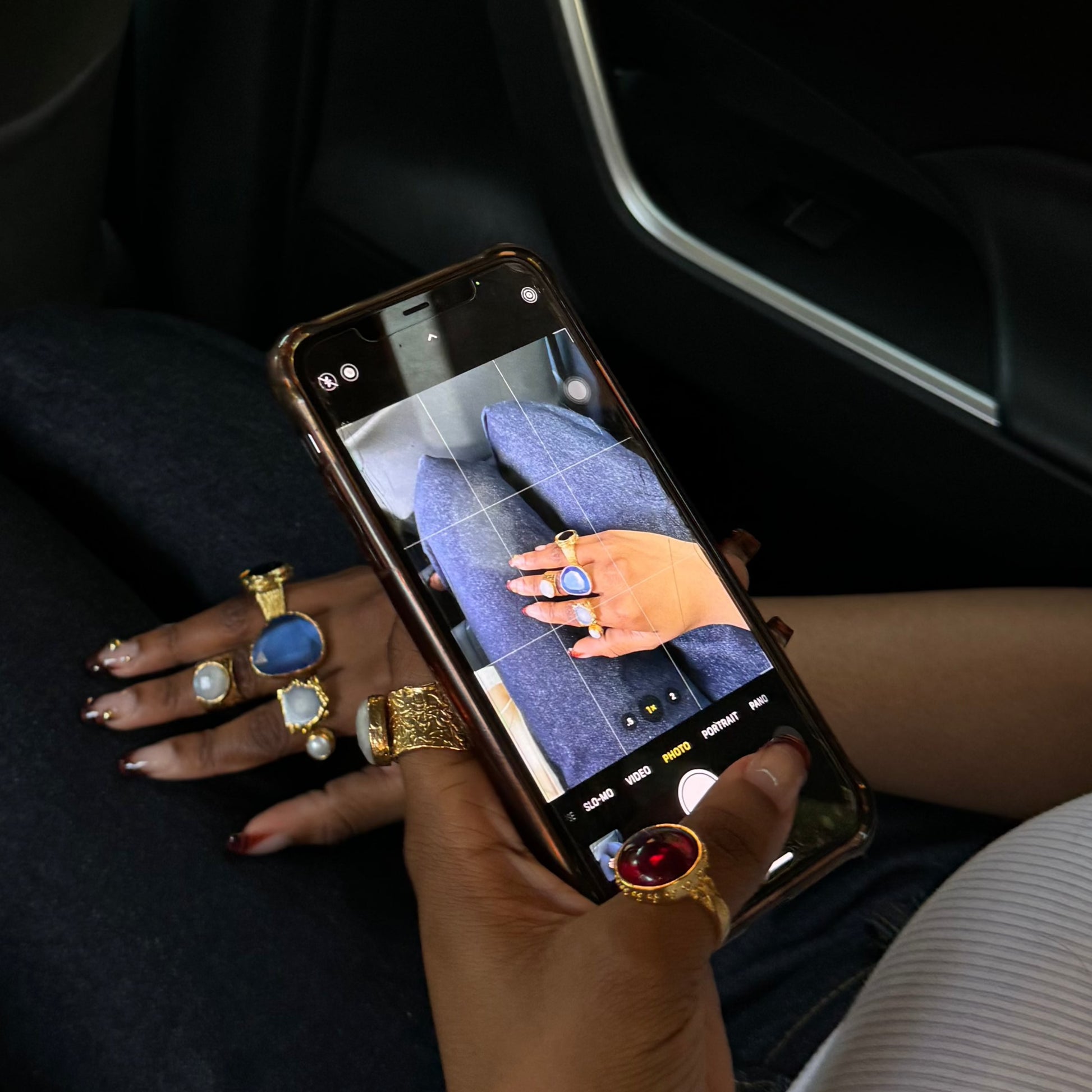 Perle is an adjustable 18k gold plating on sterling silver ring. It features a crushed gem with a pearl design.