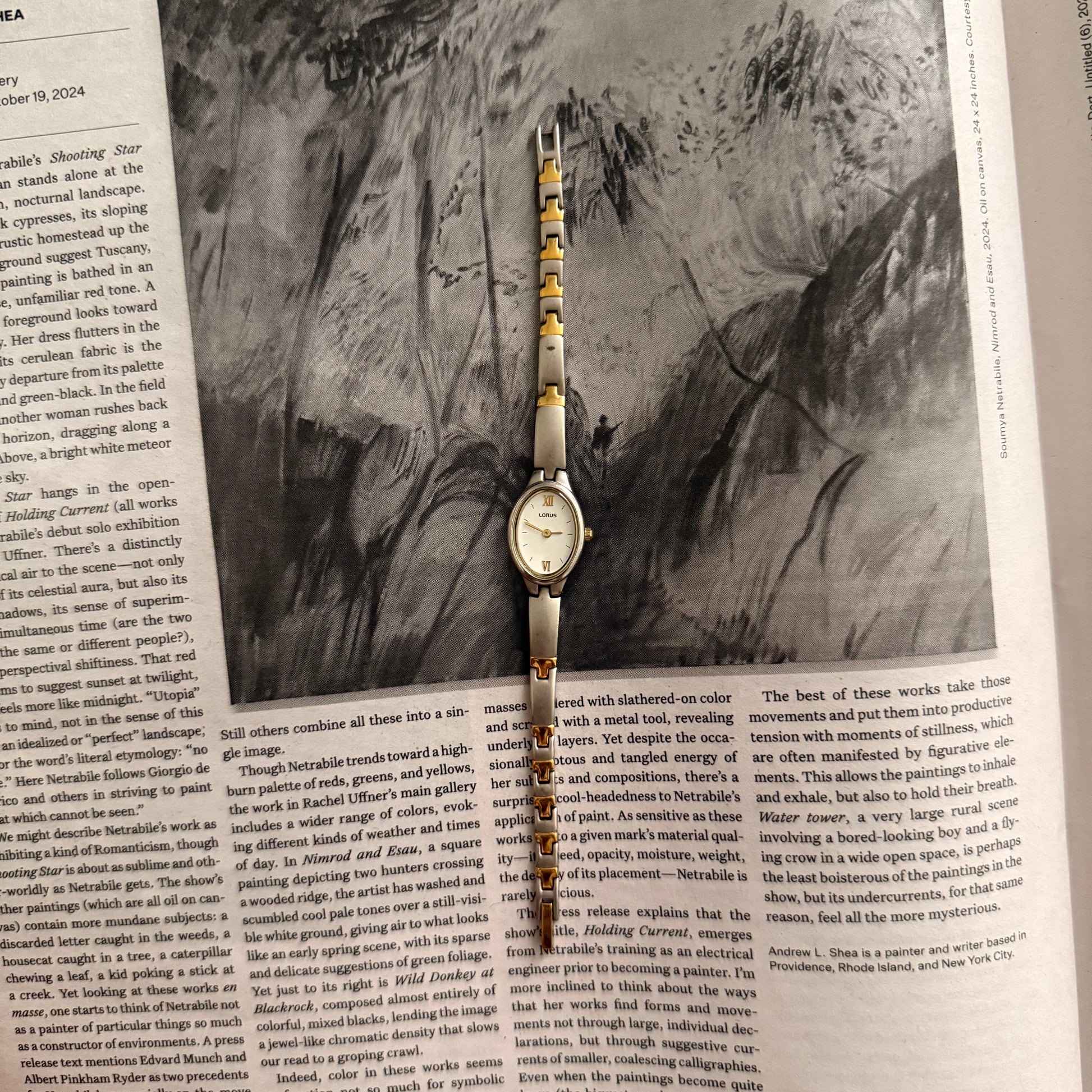 Two tone slim band oval watch